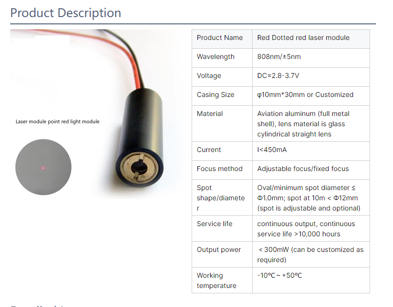 10*30mm 808nm300mW infrared laser laser head point laser module large power 808nm300mW custom 808nm laser module wholesale laser module head Inquiry Send Email