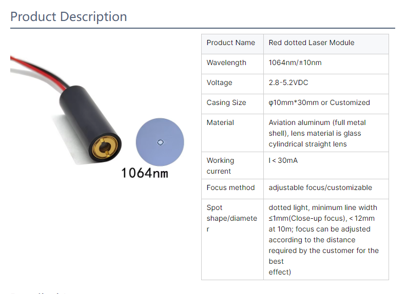 10X30mm 1064nm red laser module Customized 5mW dot laser module 1064nm red laser module 1064nm 5mw laser module 10X30mm 1064nm red laser module Inquiry Send Email