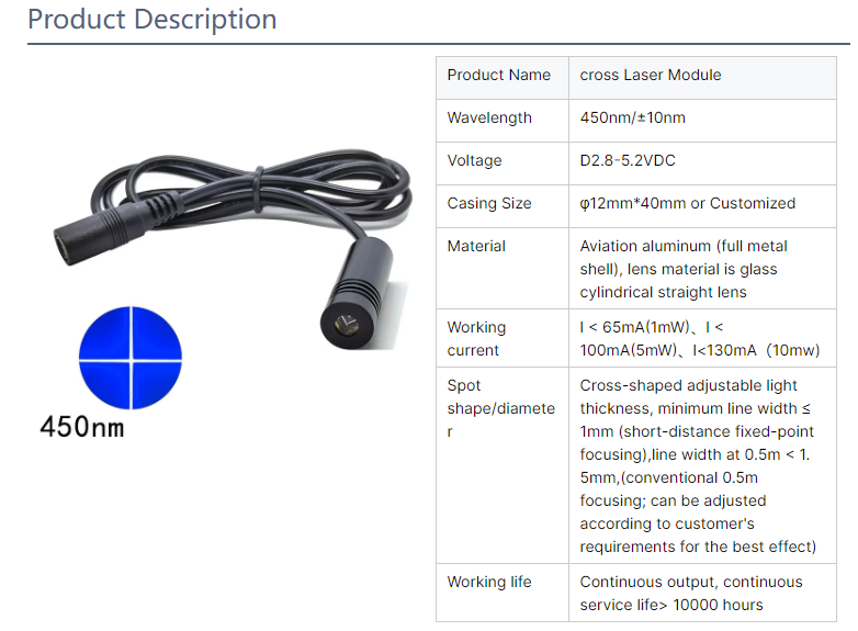 12X40mm450nm1mW5mW10mW external focus cross line cross laser module 450nm cross laser module custom 450nm 5mw laser module Inquiry Send Email