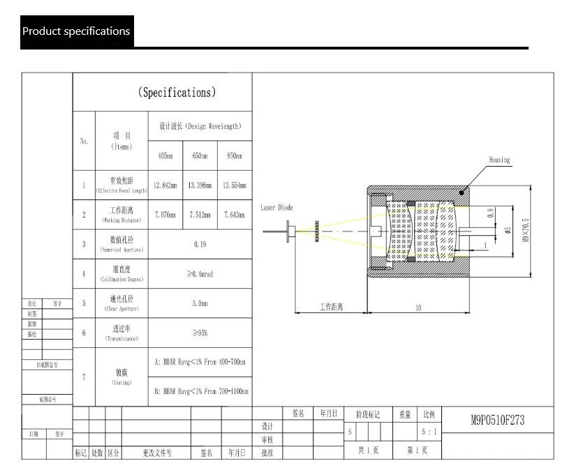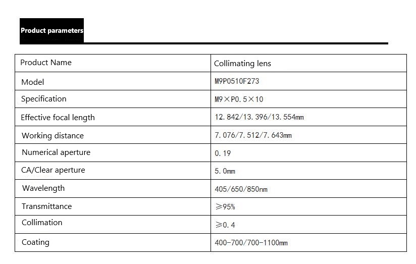 400-700nm collimator lens 650nm focal length 9.795mm optical glass Laser collimator lens