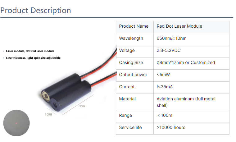 650nm 5mW red dot laser module 8mm*17mm diode optical laser modules 650nm 5mW red dot laser module 8mm*17mm diode laser module 650nm optical laser modules Inquiry Send Email