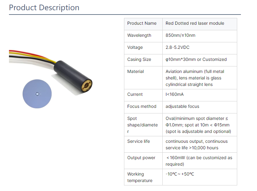 850nm 100mw red laser module 10*30mm laser module factory custom 850nm 100mw red laser module 10*30mm laser module 850nm 100mw dot laser module Inquiry Send Email