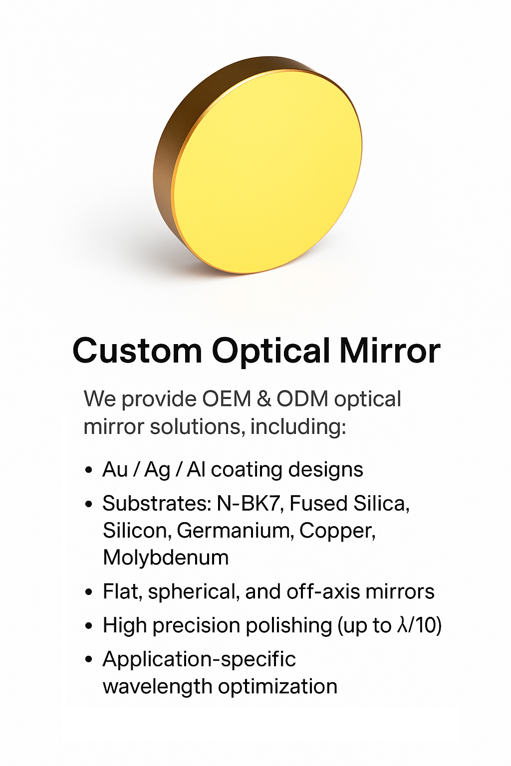 Using premium optical glass substrates, each mirror is coated with a high-purity gold reflective layer to achieve superior reflectance and consistent optical quality.