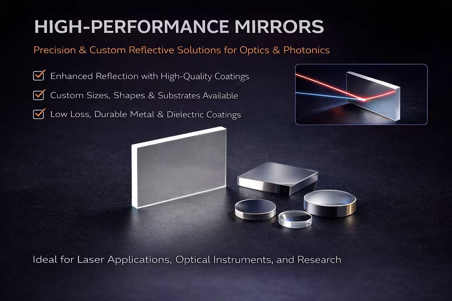 We offer custom precision optical mirrors with flexible options for substrate materials, dimensions, surface flatness, and coating specifications, helping customers achieve reliable performance in both standard and customized optical systems.