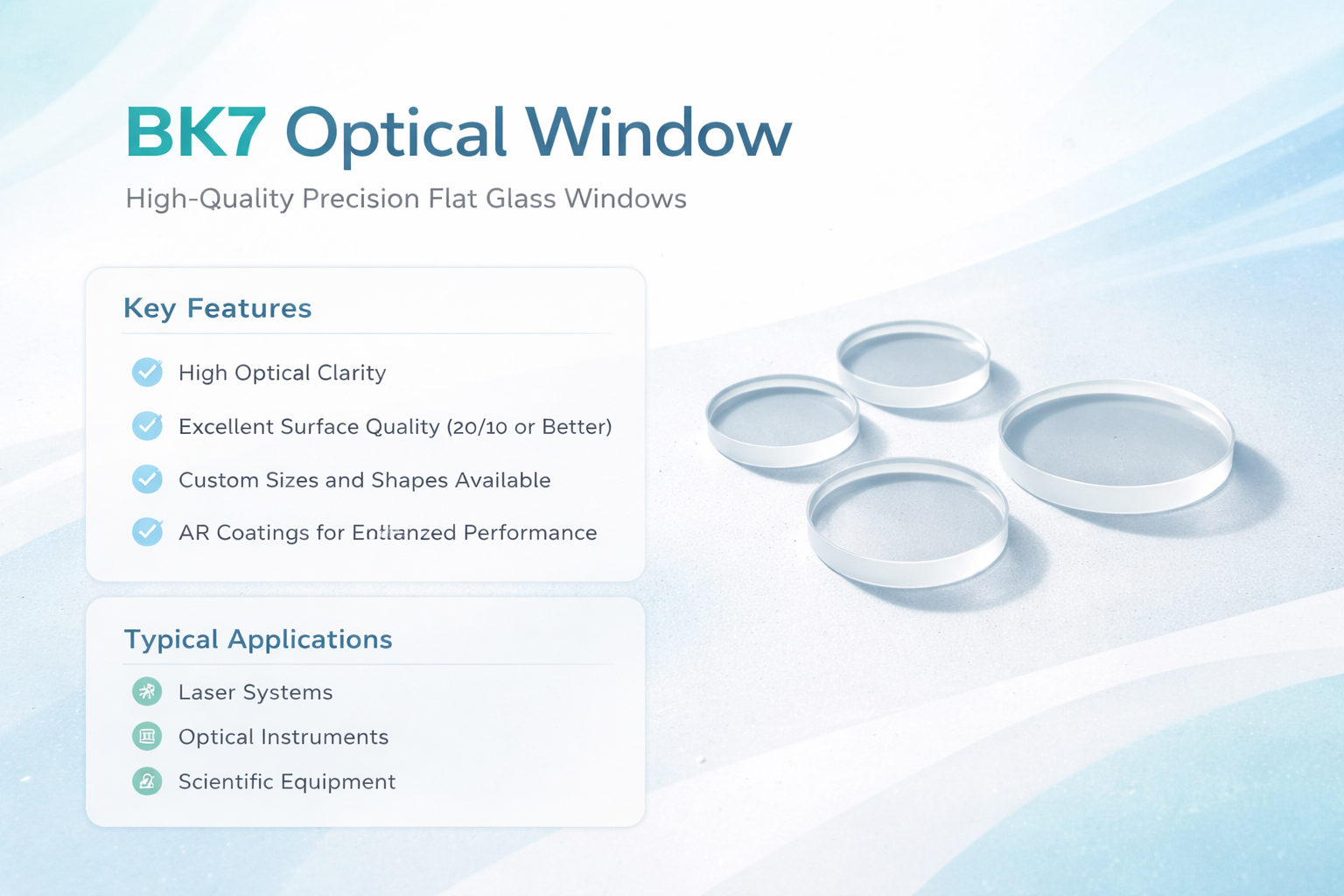 Our BK7 Optical Window provides superior transparency, durability, and reliable performance for laser optics, imaging systems, and scientific instruments.