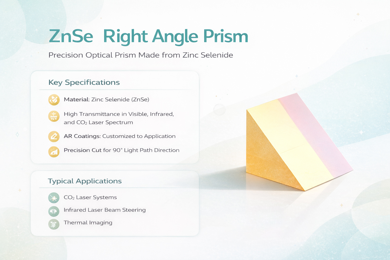 Our ZnSe Right Angle Prism is manufactured from high-quality zinc selenide, offering excellent transmission in the infrared wavelength range, especially suitable for CO₂ laser systems.
