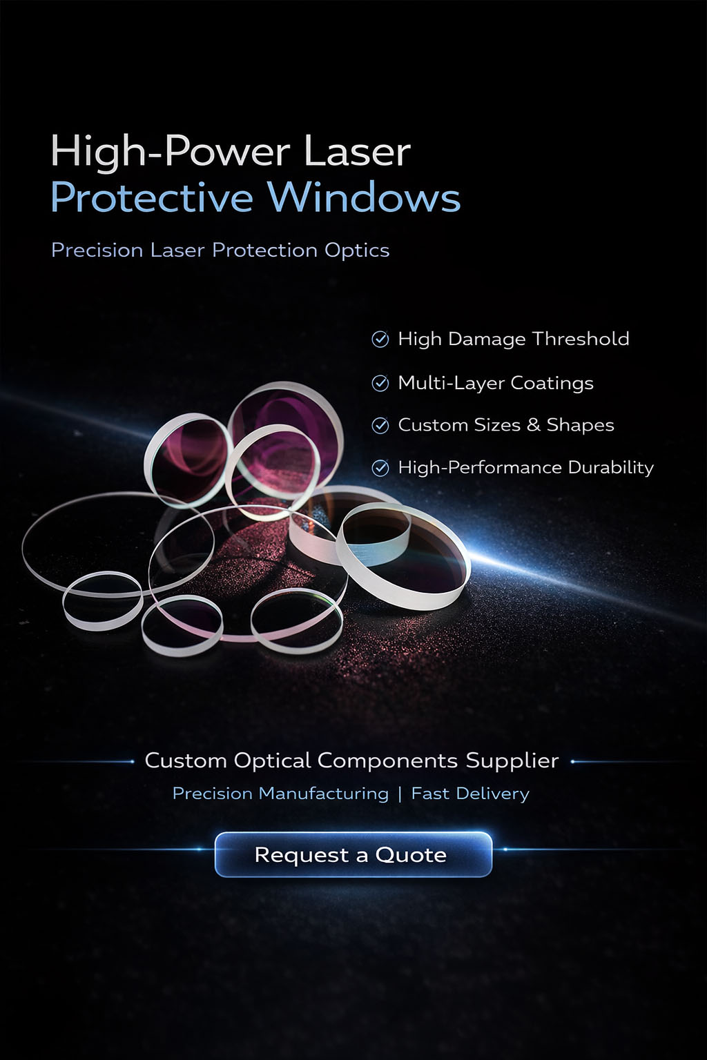 JGS1 Protective Windows are widely used for laser systems, UV optics, imaging devices, sensors, semiconductor equipment, and scientific instruments.