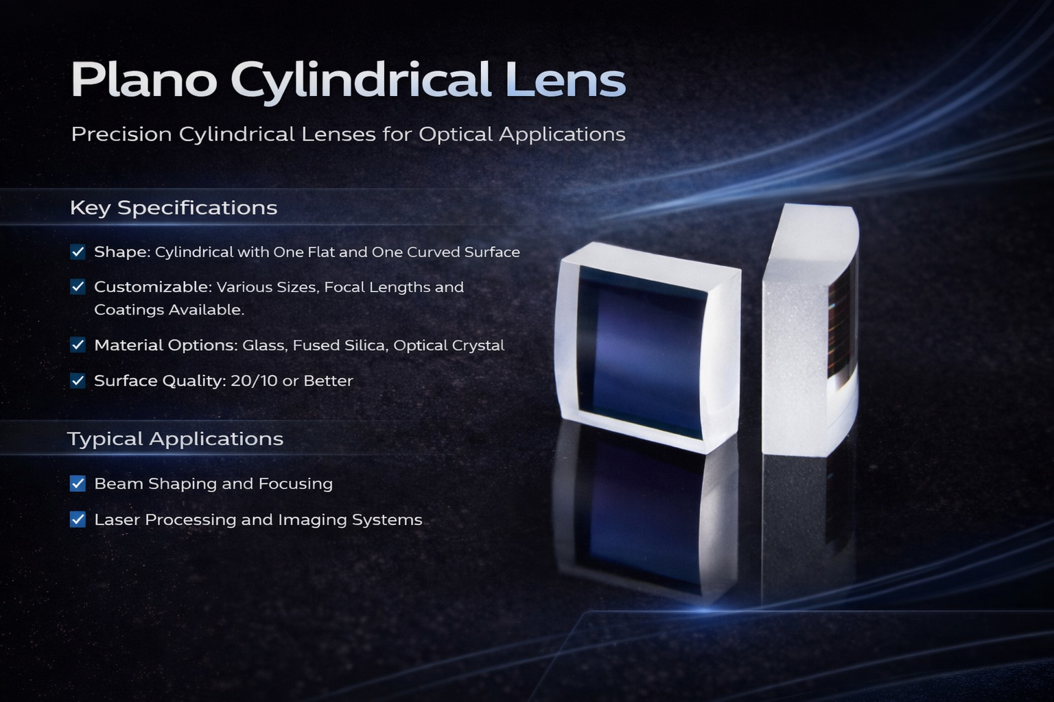 Our Plano Convex Cylindrical Lens is designed for efficient one-dimensional beam shaping and line focusing applications.