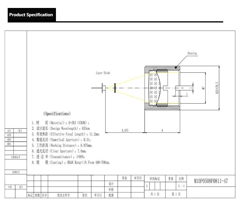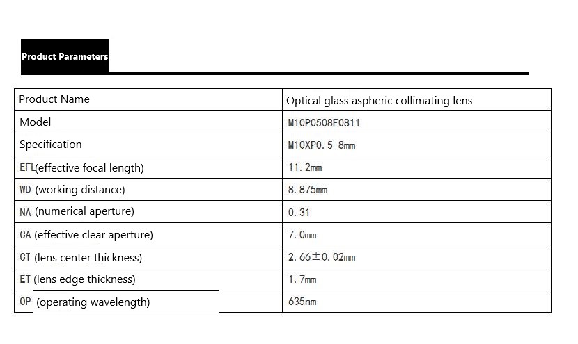 635nm Collimator lens f11.2mm optical aspheric laser focus measurement lens collimation lens