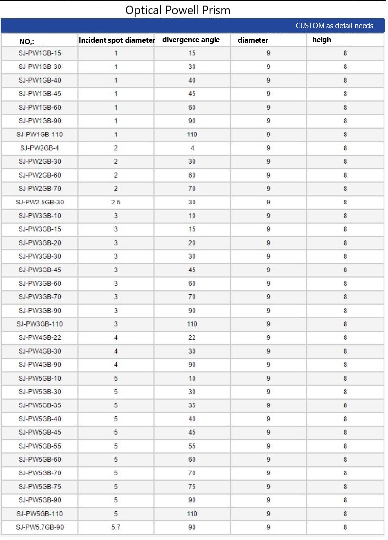 We can provide optical lenses, optical prisms, high-precision Powell prisms, right-angle prisms, laser lenses, filters, aspherical lenses, collimating lenses, optical glass lenses, optical reflectors, cylindrical lenses, laser modules, laser heads, optical glued lenses, optical rod mirrors, etc.