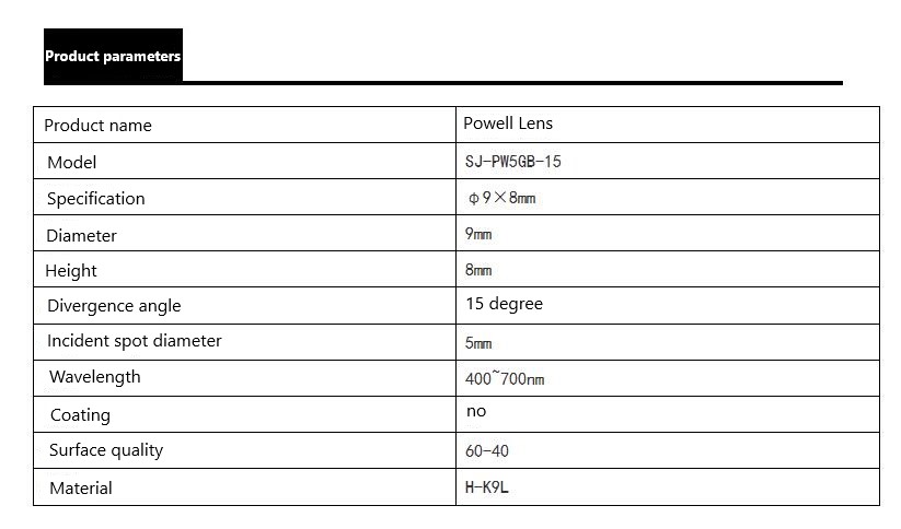 Fan Angle 15 degrees 9mm diameter Powell prism optical prism