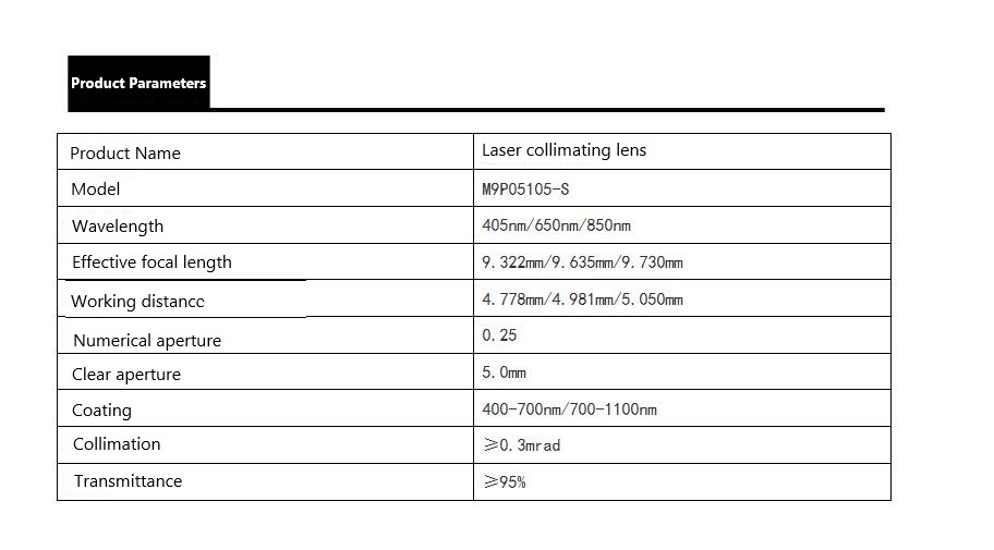 For Collimating lens, the focal length we have 3.77mm,4.02mm, 4.39mm,6mm,6.2mm ,6.5mm,8mm, 8.3mm, 9.8mm, 10mm,11.2mm and 12mm.