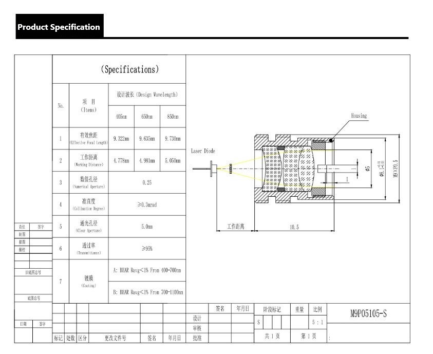 405nm wavelength 9.322nm focal length laser collimation lens manufacturer customized lens