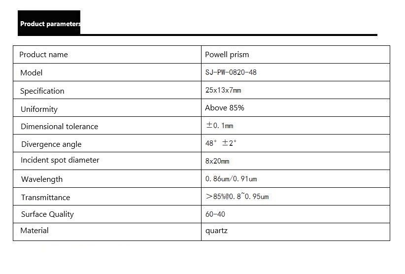 Diameter 8*20mm divergence angle 48 degrees Powell lenses prism optical prism manufacturer customized prism