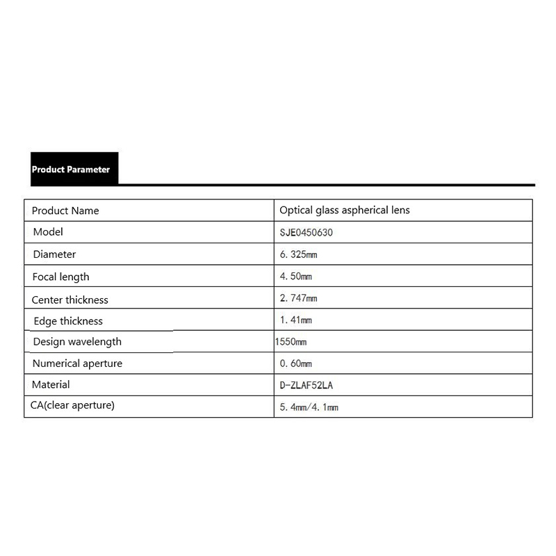 6.325mm diameter 1550nm aspherical lens manufacture custom4.5mm focal length optical lens