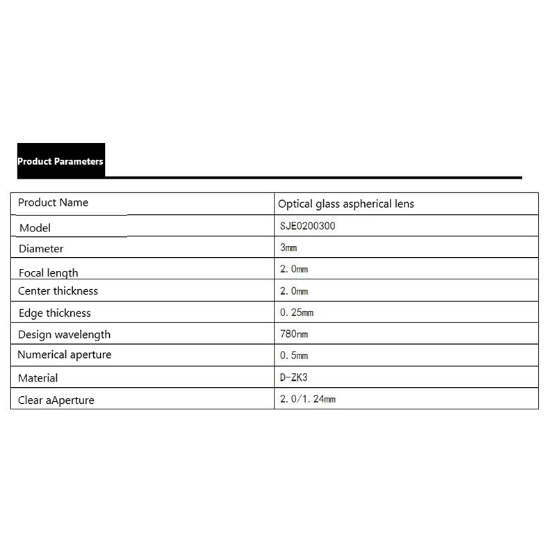 3mm diameter optical aspheric lens 2mm focal length wavelength 780nm aspherical glass lens