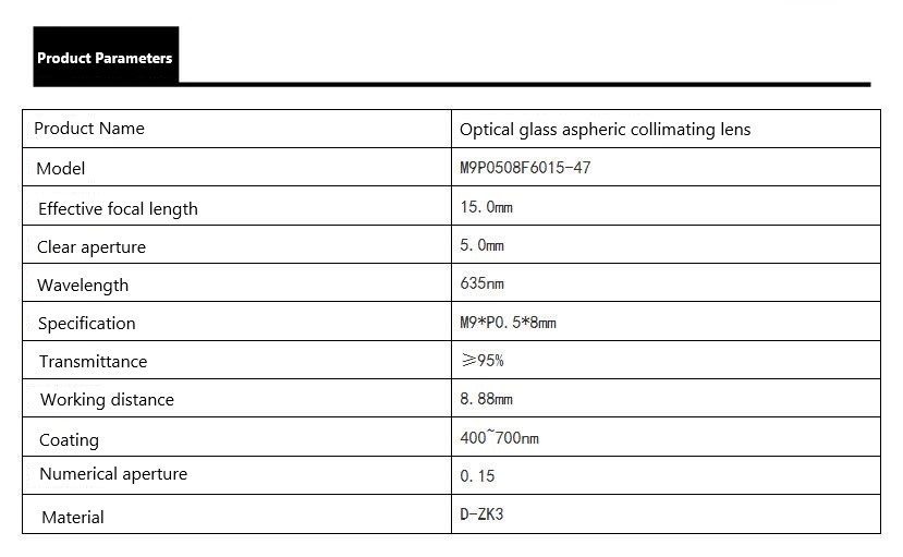 For Collimating lens, the focal length we have 3.77mm,4.02mm, 4.39mm,6mm,6.2mm ,6.5mm,8mm, 8.3mm, 9.8mm, 10mm,11.2mm and 12mm.