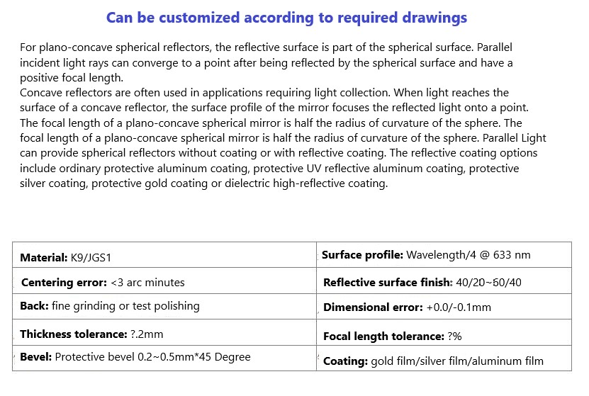 Customized plano-concave lens manufacturers custom coating plano-concave spherical reflective mirror