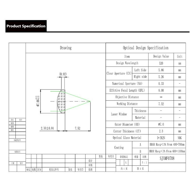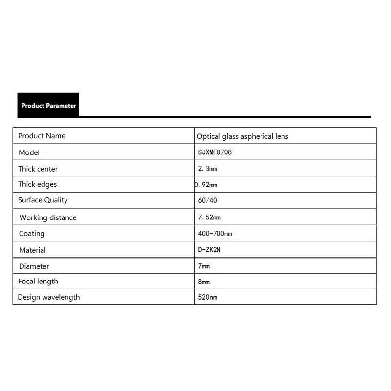 Diameter 7mm focal length 8mm aspheric lens factory custom 400-700nm D-ZK2N aspherical lens