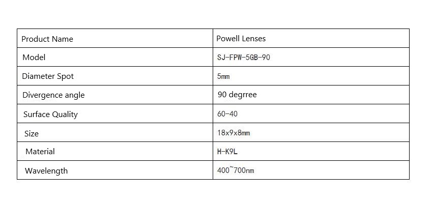 5mm 90 degree Square Powell Lens factory Custom Powell Lenses optical prism
