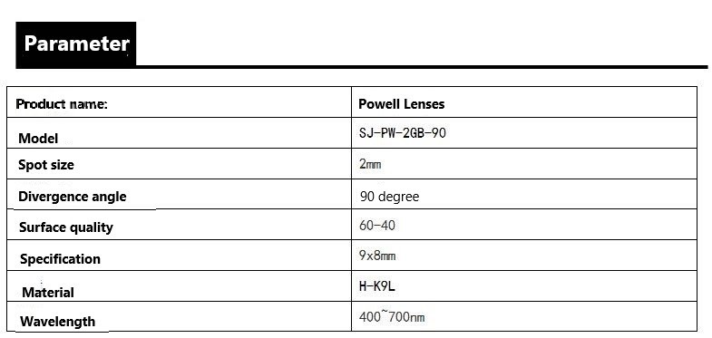 Custom Fan angle 90 degree Powell prism Spot Diameter 2mm Glass Laser Line Powell Lenses