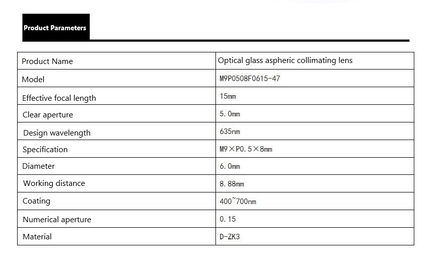 For Collimating lens, the focal length we have 3.77mm,4.02mm, 4.39mm,6mm,6.2mm ,6.5mm,8mm, 8.3mm, 9.8mm, 10mm,11.2mm and 12mm.