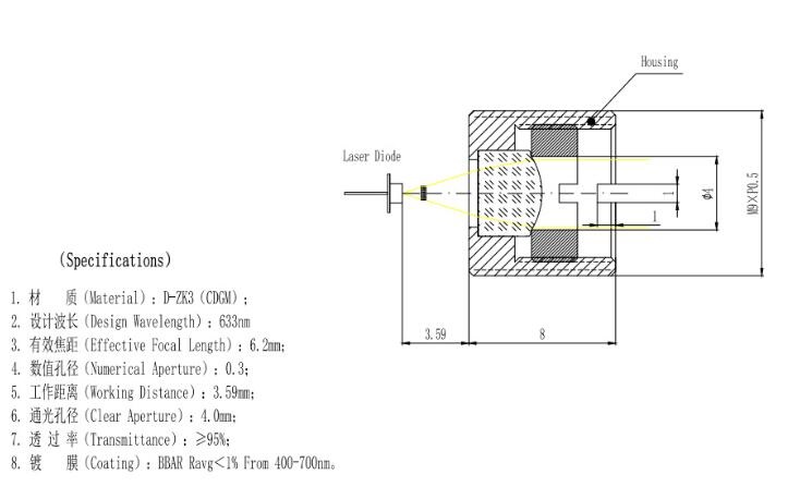 633nm collimator lens diameter 4.7mm focal length 6.2mm optical laser K4 collimating lens