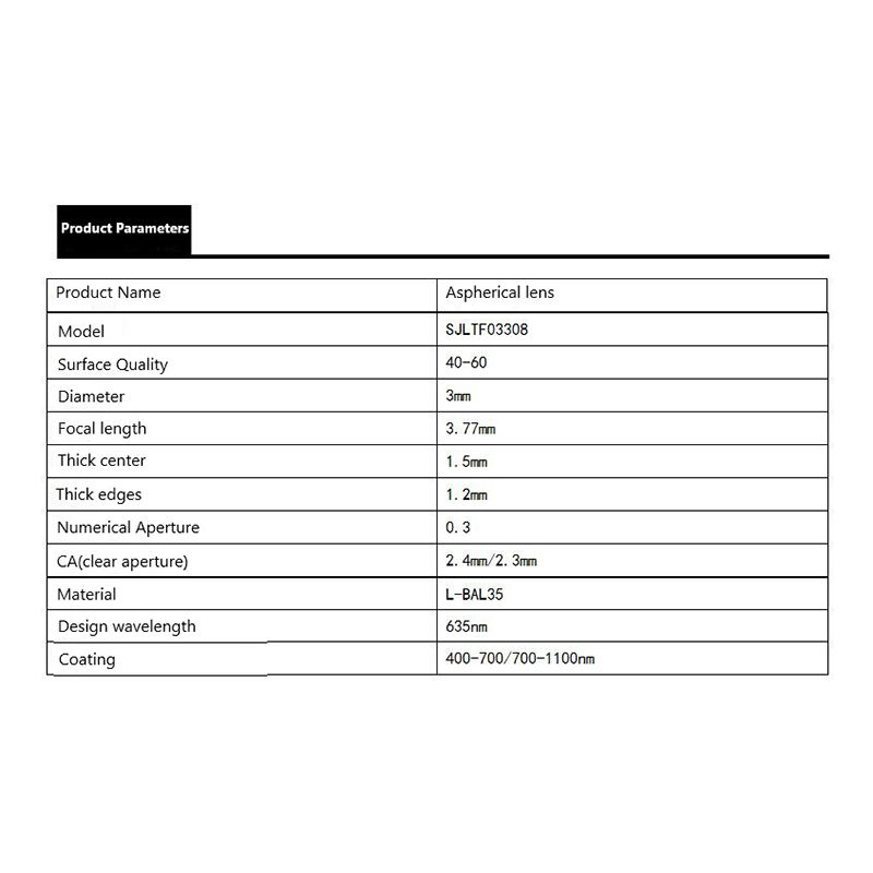 400-1100nm aspheric optical lens wavelength 635nm diameter 3mm aspherical optical glass lens