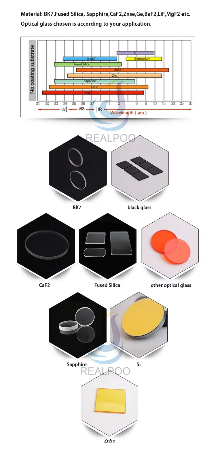 We can provide optical lenses, optical prisms, high-precision Powell prisms, right-angle prisms, laser lenses, filters, aspherical lenses, collimating lenses, optical glass lenses, infrared lens,optical reflectors, cylindrical lenses, laser modules, laser heads, optical glued lenses, optical rod mirrors, etc.